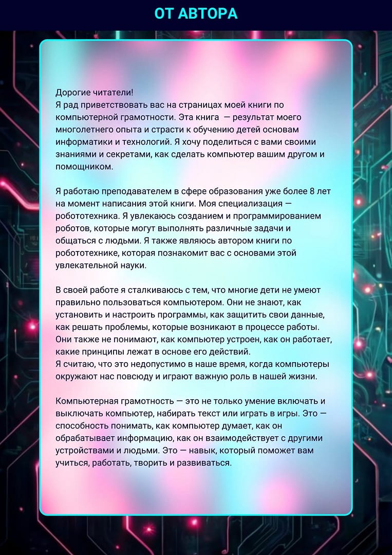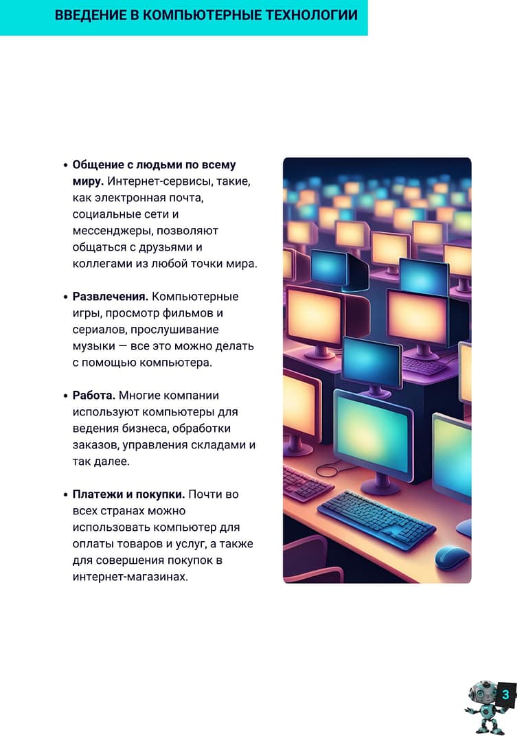 - Простые и понятные объяснения основ компьютерной науки, искусственного интеллекта, интернета, безопасности, работы с документами и многого другого.